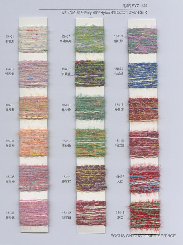 특징: 불분명하고 부드럽고 탄력 있습니다 구성: 51%Poly 43%Nylon 4%Cotton 2%Metallic